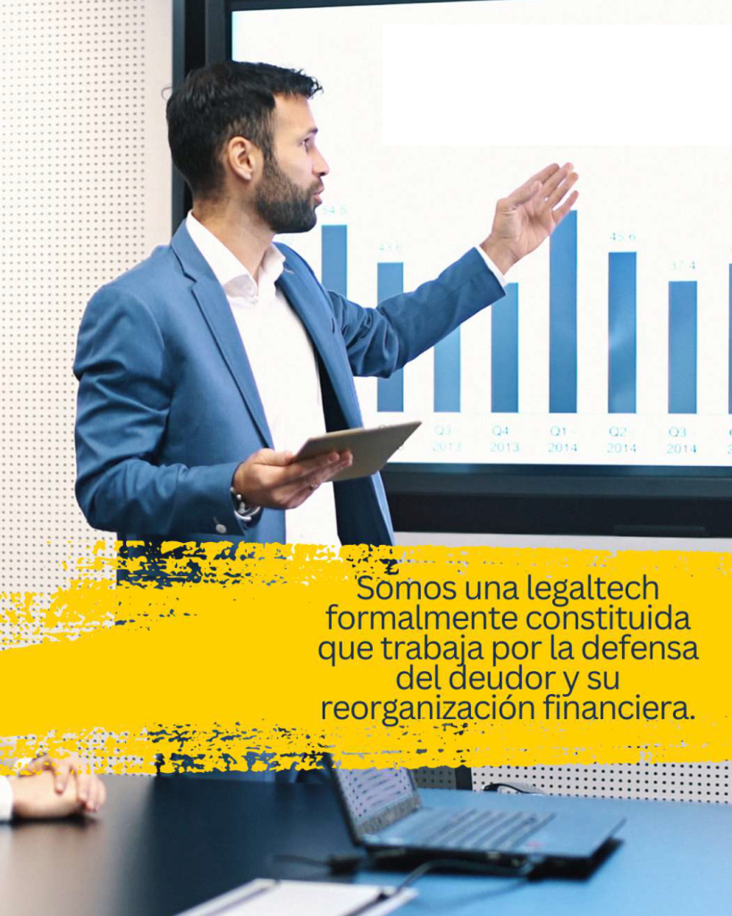 Somos una legaltech formalmente constituida que trabaja por la defensa del Emprendedor y su reorganización financiera, a través de una estrategia de intervención integral donde participan profesionales en el área del derecho, la administración y la contabilidad financiera.